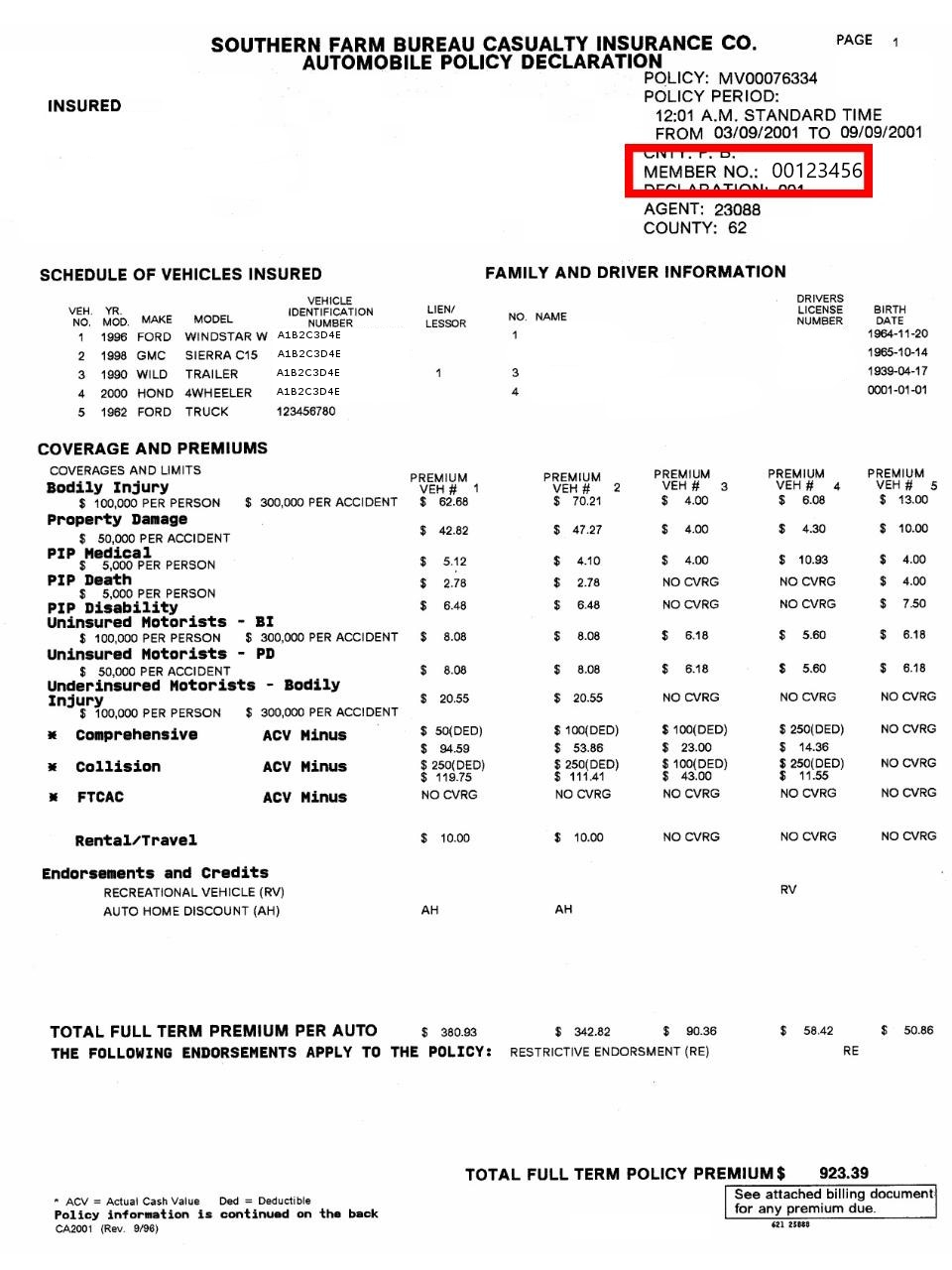 Your County Farm Bureau Membership Number is printed in documentation you receive by mail. It is denoted by the title Membership Number. Click the samples below for a detailed picture of where your Membership Number is located:
